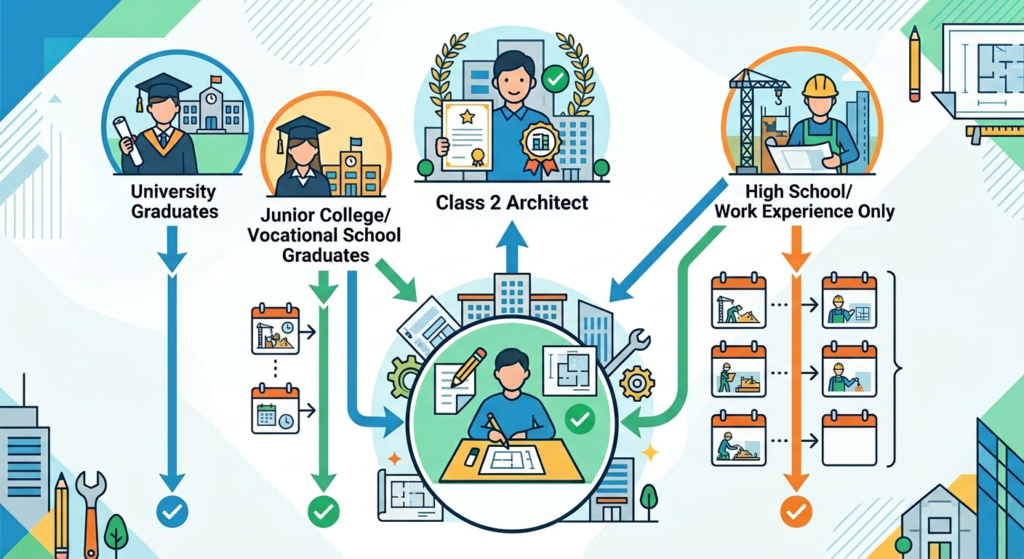 Q:【不動産クイズ】二級建築士の受験資格について正しいものはどれ?